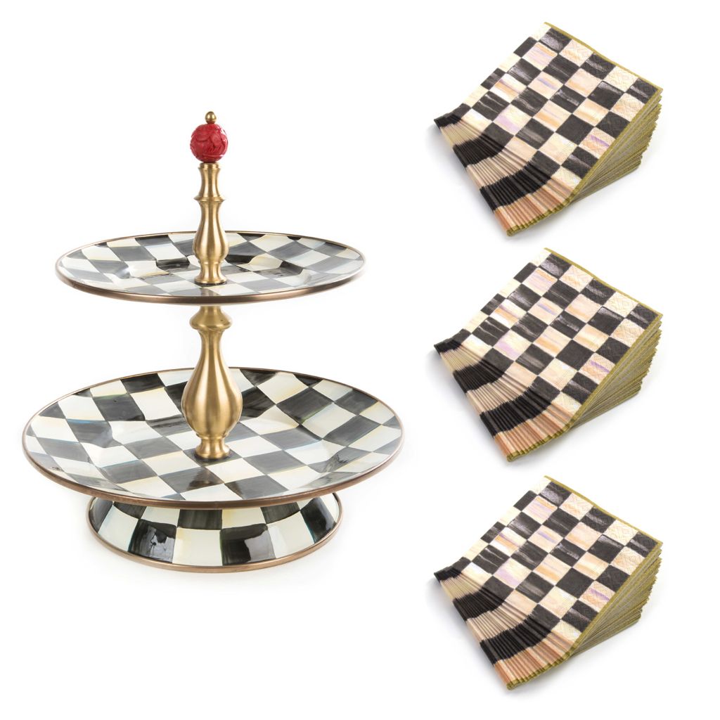 Mackenzie Childs Courtly Check 2 Tier Sweet Stand 60 Cocktail Paper Napkins Shophq Com